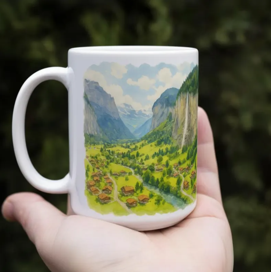 • Taza viajera versión grande de AliveandRoaming: Si buscas un regalo muy especial y viajero, hemos diseñado nuestras tazas viajeras con fotos reales de nuestras aventuras, transformadas en ilustraciones tipo acuarela. Son de cerámica e inspiradas en destinos tan populares como Zermatt o Lauterbrunnen en Suiza, los icónicos Dolomitas, o el mítico Golden Gate en San Francisco, entre otros. Cada taza tiene su propia historia y puede ser un detalle muy especial para alguien que tiene un viaje soñado o como recuerdo de una aventura pasada.