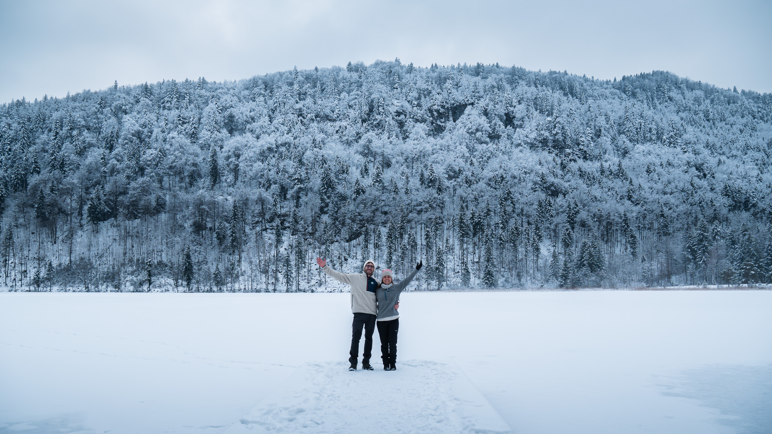 • Calzado adherente para hielo: Es muy recomendable llevar un buen calzado, sobre todo si ha estado nevando o ha helado la noche anterior. Importante botas con buena suela o incluso con minicornamentas tipo crampones ligeros. Como recomendaciones os decimos las botas que usamos nosotros: Botas Mammut Nova IV Mid GTX, son las que uso yo, que también las tenéis en versión de hombre. O las de Rubén, que son las Botas Lowa Renegade GTX Mid, que también tiene versión de mujer. Siempre recomendamos estas porque os sirven tanto para rutas como para visitar ciudades. En este viaje yo llevaba otras botas que no son para hacer senderismo, pero son más calentitas por dentro y también tienen suela preparada para la nieve, me las compré el primer año viviendo en Austria, porque los inviernos son bastante duros. Son las Botas Lowa Renegade ICE