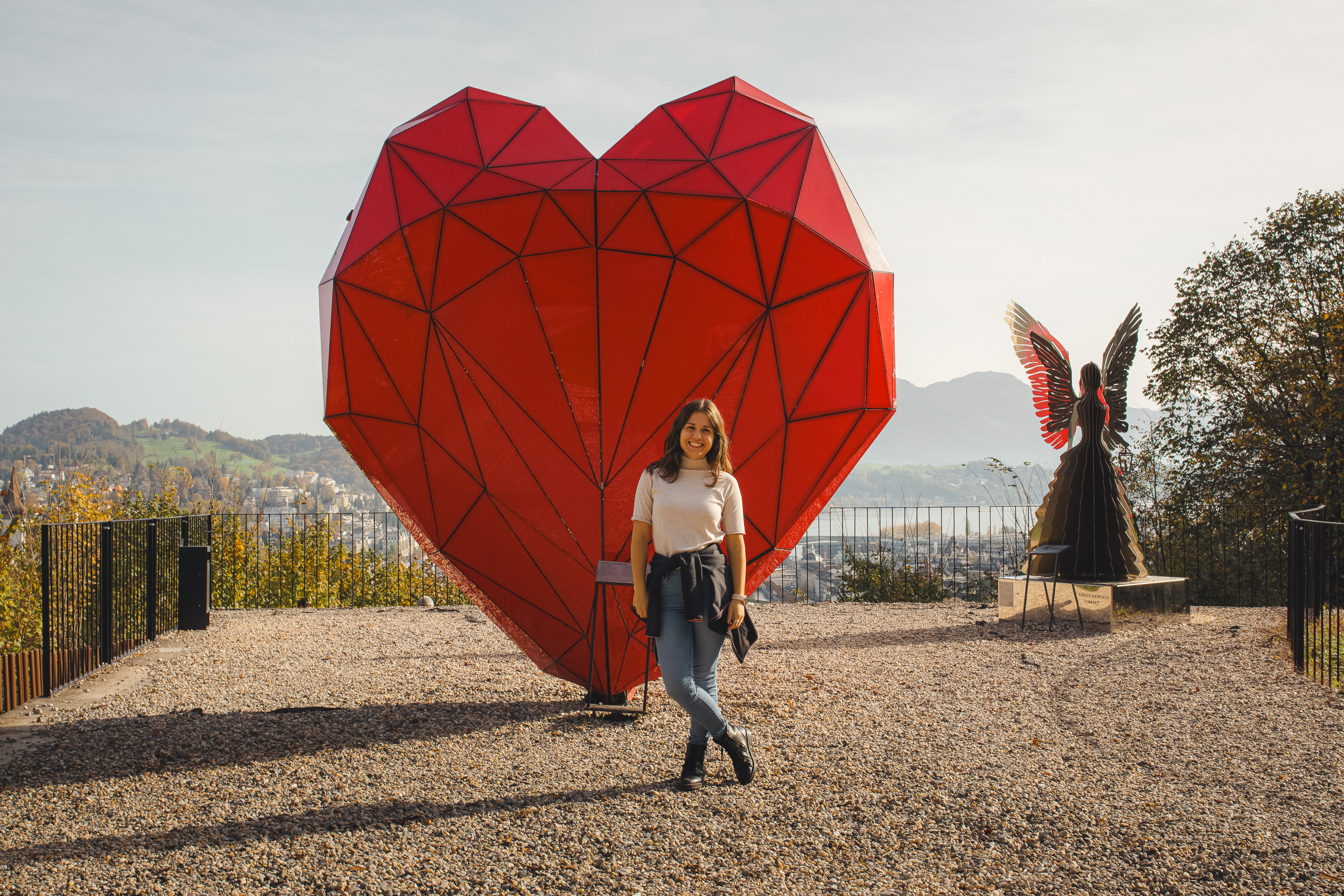 Aparte de las vistas, en el mirador junto al Château Gütsch, en la colina Gütsch, hay varias esculturas contemporáneas que forman parte de una pequeña exposición de arte al aire libre. Una de ellas es un corazón gigante rojo. La escultura se llama Heart of Hope (corazón de la esperanza) y simboliza esperanza para el futuro y la posibilidad de cambiar el rumbo sobre todo frente a problemas como la contaminación o las crisis globales.