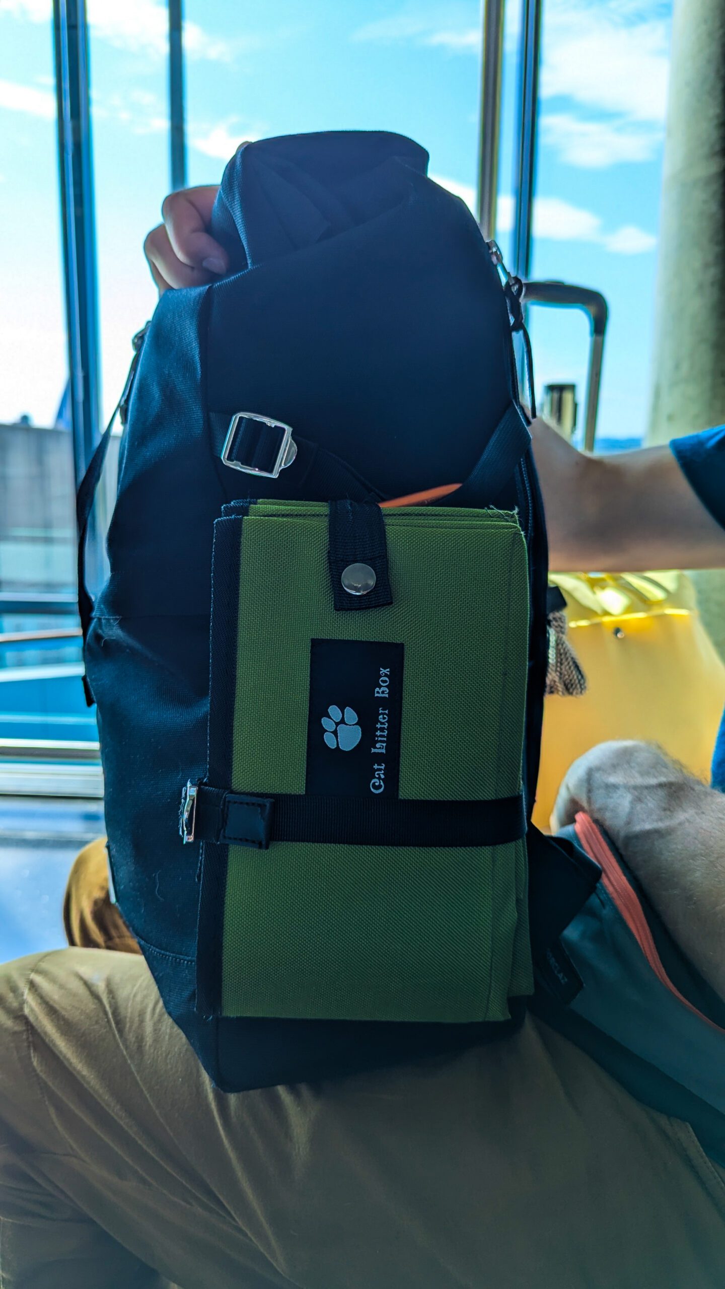 Algo que recomendamos, porque a nosotros nos ayudó mucho, es llevar un arenero portátil y una bolsa aparte con la arena.