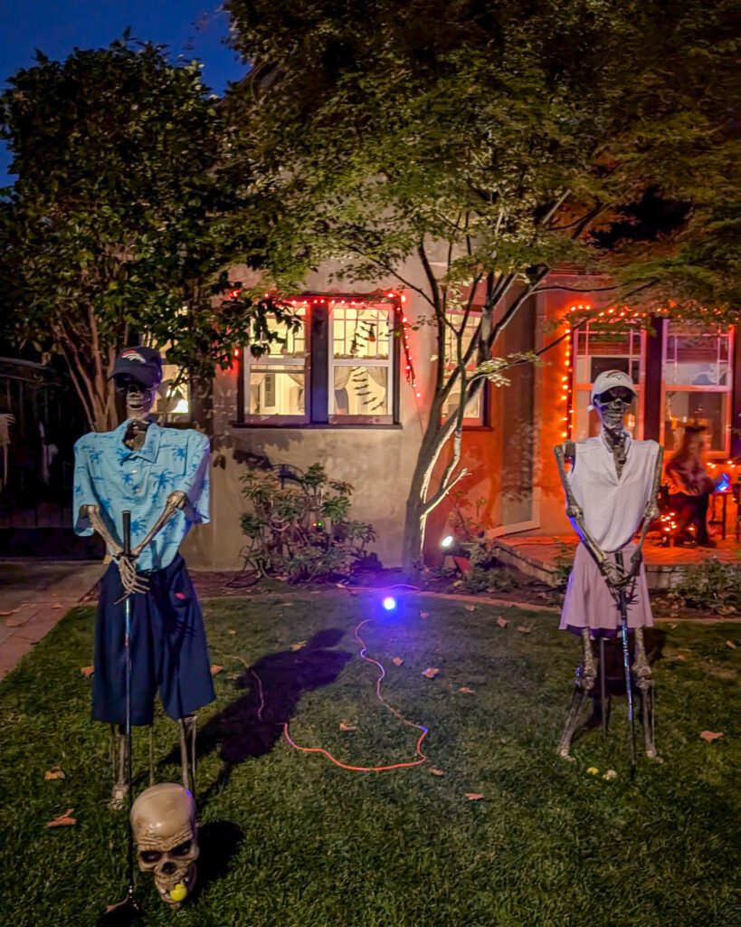 Las decoraciones de las casas son increíbles, algunas parecen sacadas de una película. Hay gente que monta pasajes del terror en sus jardines, todo el mundo se disfraza y hay más caramelos que calabazas. La ciudad entera entra en modo de celebración y hay un ambiente súper divertido. Es una suerte haber formado parte de esta tradición gracias a vivir en California.