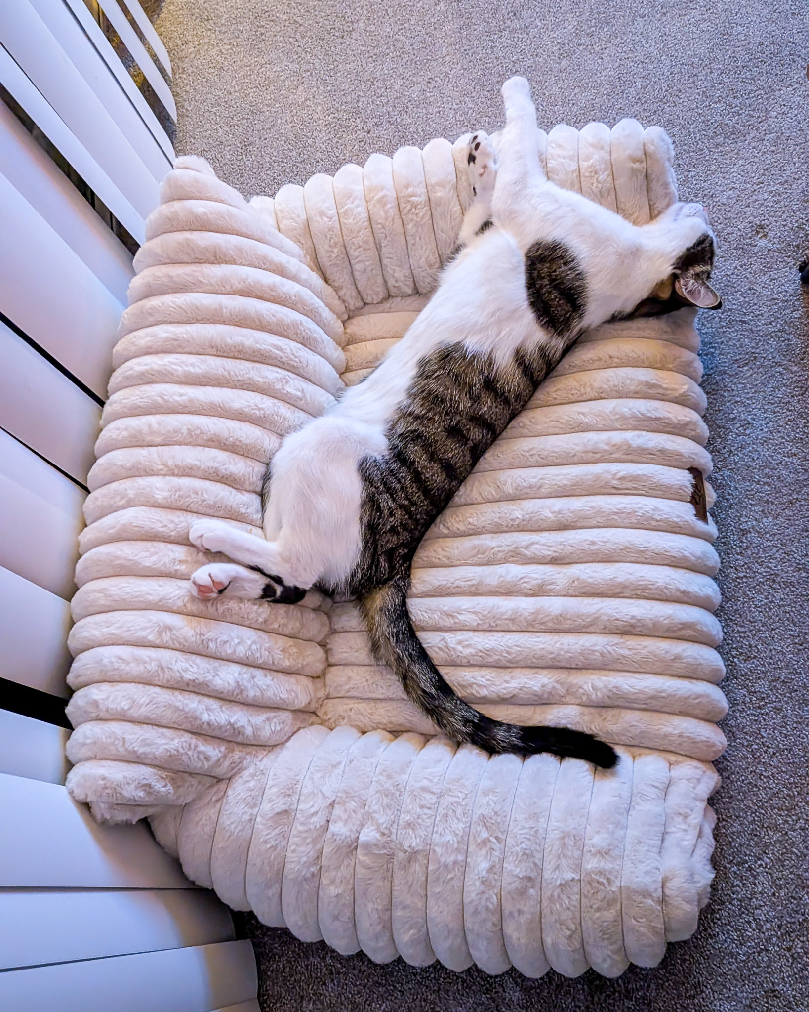 - Otra cosa que ha mejorado significativamente su salud, y nuestra tranquilidad mental, es una fuente de agua que le hemos comprado para animarle a beber un poquito más. Nos permite registrar sus hábitos, no solo la cantidad de agua que bebe, sino también cuánta comida húmeda o seca consume, entre otros hábitos. Aún tenemos que ver, con algo más tiempo, si realmente Bio prefiere beber de la fuente antes que de un cuenco normal, pero de momento parece que sí. Aunque ya sabéis que con los gatos nunca se sabe.